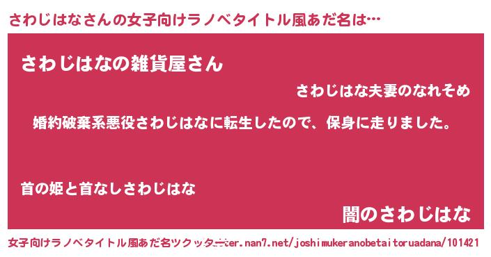 | 胡散臭い通販商品みたいなあだ名 | 『幸せが訪れる高級そうな絵画…その名も「さわじはな」』 |