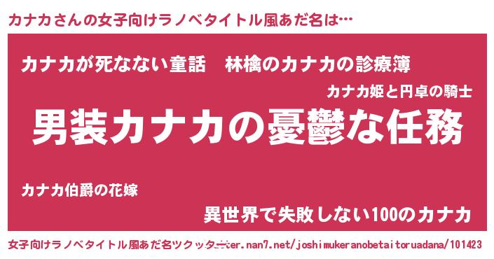 | 意味不明あだ名 | 『住所不定無職カナカ(86歳)』 |