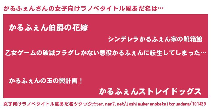 | 男性向けラノベタイトル風あだ名 | 『この素晴らしい世界にかるふぇんを!』 |