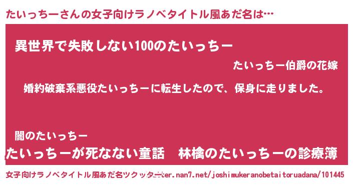 | 男性向けラノベタイトル風あだ名 | 『タイッチースレイヤー』 |