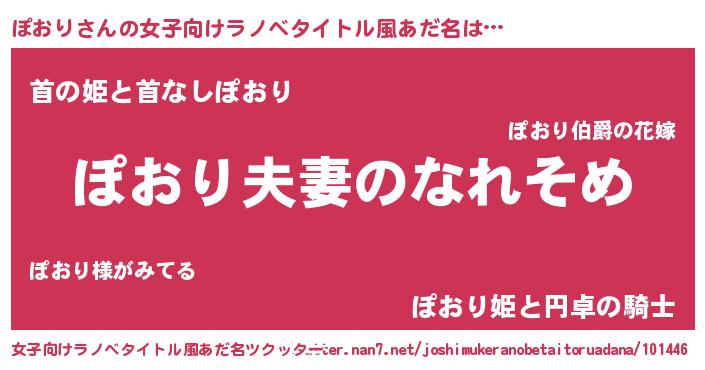 | 男性向けラノベタイトル風あだ名 | 『おまえをオタクにしてやるから、俺をぽおりにしてくれ! 』 |