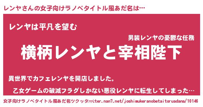 | 胡散臭い通販商品みたいなあだ名 | 『伝統あるサプリメント…その名も「レンヤ」』 |