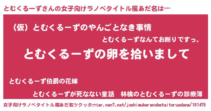 | 男性向けラノベタイトル風あだ名 | 『とむくるーずの嫁は女の子じゃないと思った?』 |