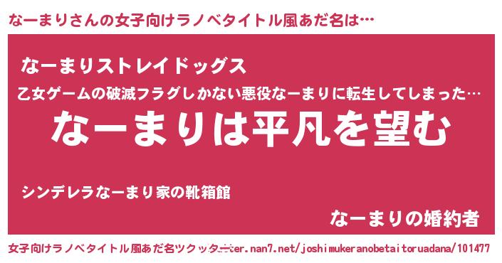 | 男性向けラノベタイトル風あだ名 | 『ダンジョンになーまりを求めるのは間違っているだろうか』 |
