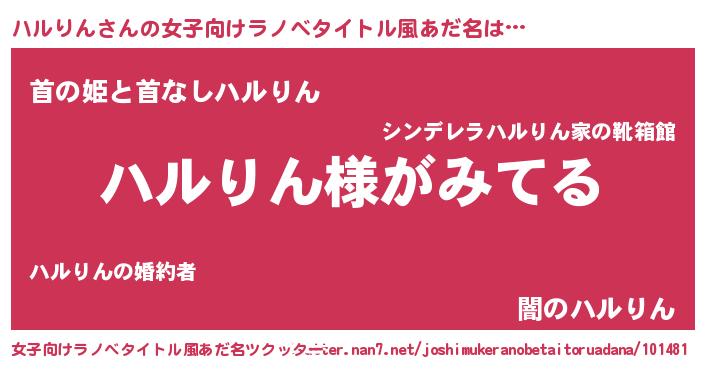 | 男性向けラノベタイトル風あだ名 | 『ハルりんの嫁は女の子じゃないと思った?』 |