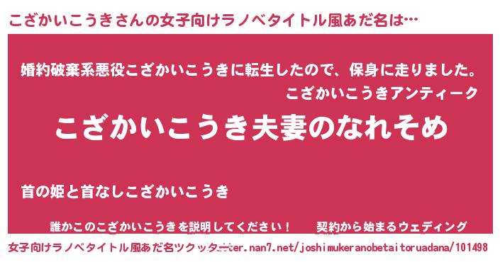 | 男性向けラノベタイトル風あだ名 | 『おまえをオタクにしてやるから、俺をこざかいこうきにしてくれ! 』 |