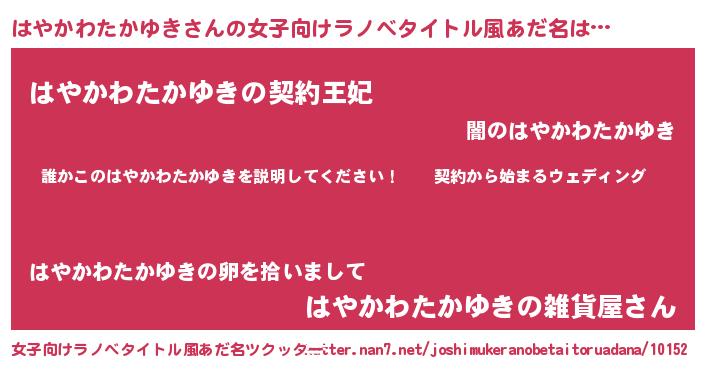 | 肩書あだ名 | 『はやかわたかゆき社長』 |