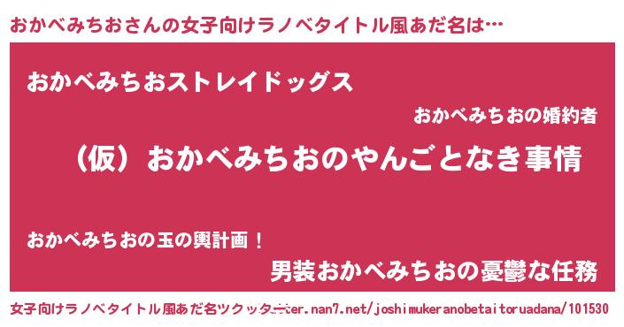 | 男性向けラノベタイトル風あだ名 | 『おかべみちおの憂鬱』 |