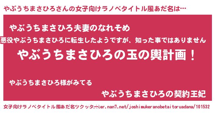 | 男性向けラノベタイトル風あだ名 | 『やぶうちまさひろ~年齢イコール彼女いない歴の魔法使い~』 |