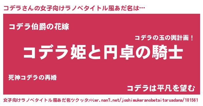 | 胡散臭い通販商品みたいなあだ名 | 『モテモテ間違いなし霊験あらたかなお札…その名も「コデラ」』 |