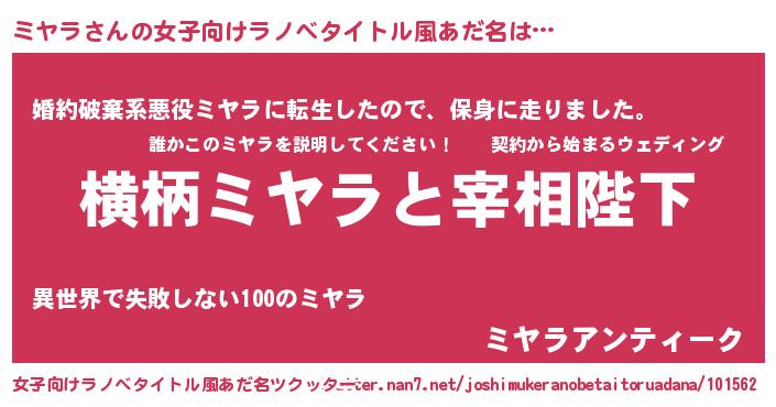 | 男性向けラノベタイトル風あだ名 | 『ミヤラに滅ぼされるだけの簡単なお仕事です』 |