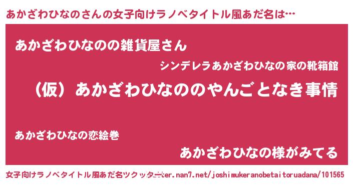 | 男性向けラノベタイトル風あだ名 | 『あかざわひなのの憂鬱』 |