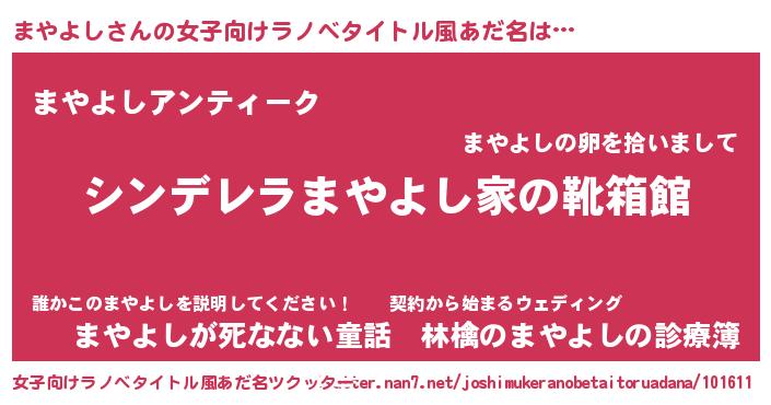 | 男性向けラノベタイトル風あだ名 | 『緋弾のマヤヨシ』『魔弾の王とまやよし』 |
