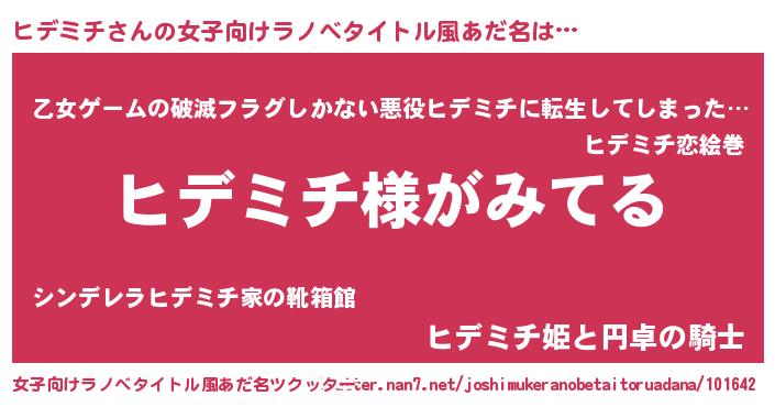 | 男性向けラノベタイトル風あだ名 | 『ヒデミチの嫁は女の子じゃないと思った?』 |
