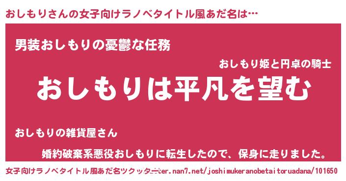 | 男性向けラノベタイトル風あだ名 | 『ダンジョンにおしもりを求めるのは間違っているだろうか』 |