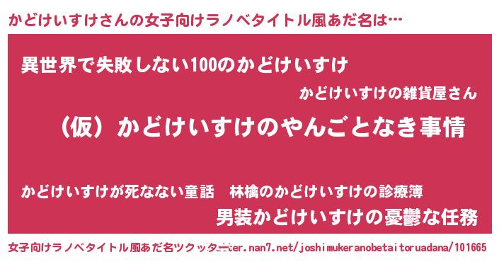 | 男性向けラノベタイトル風あだ名 | 『かどけいすけの憂鬱』 |