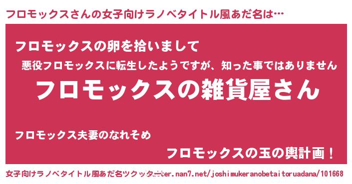 | 男性向けラノベタイトル風あだ名 | 『やはりフロモックスの青春ラブコメはまちがっている 』 |