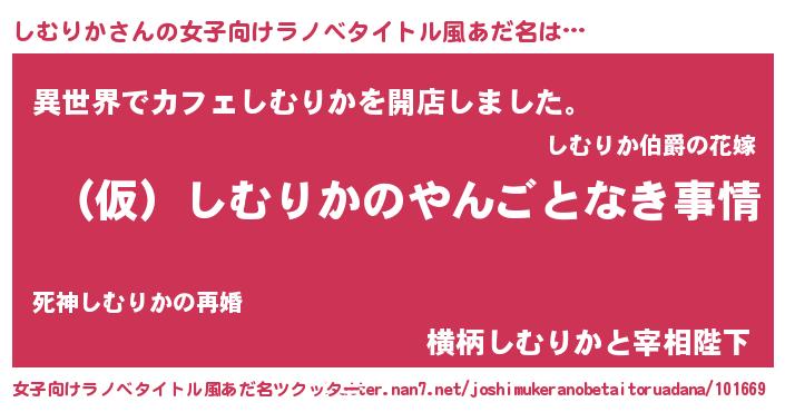 | 男性向けラノベタイトル風あだ名 | 『しむりかの憂鬱』 |