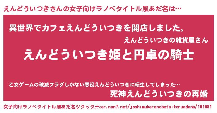 | 男性向けラノベタイトル風あだ名 | 『えんどういつきの憂鬱』 |
