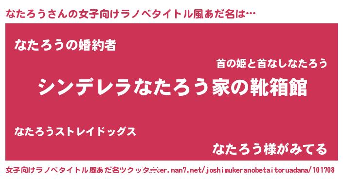 | 意味不明あだ名 | 『なたろうフォーエバー』『自称なたろう』 |