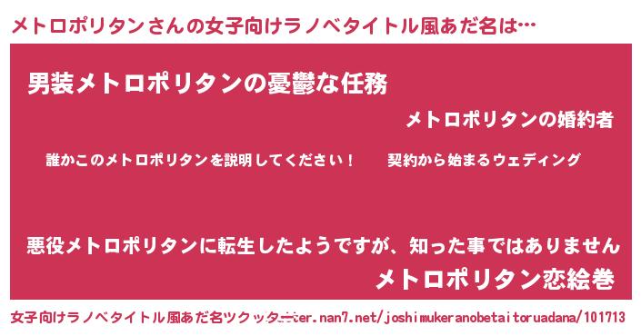 | 男性向けラノベタイトル風あだ名 | 『メトロポリタンアートオンライン』 |