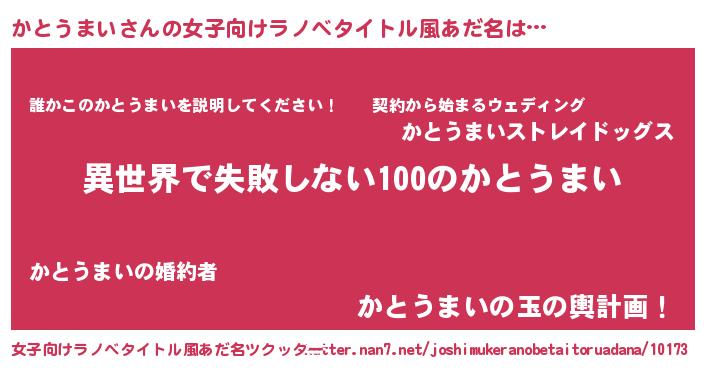 | 男性向けラノベタイトル風あだ名 | 『かとうまいという概念が存在しない退屈な世界 』 |
