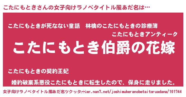 | 男性向けラノベタイトル風あだ名 | 『やはりこたにもときの青春ラブコメはまちがっている 』 |