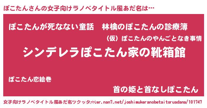 | 男性向けラノベタイトル風あだ名 | 『緋弾のポコタン』『魔弾の王とぽこたん』 |