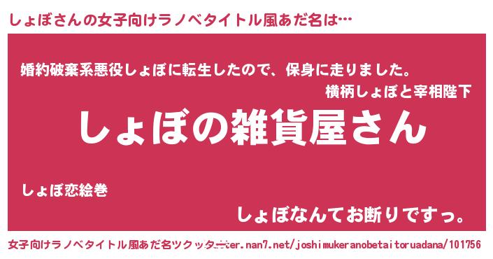 | 男性向けラノベタイトル風あだ名 | 『やはりしょぼの青春ラブコメはまちがっている 』 |