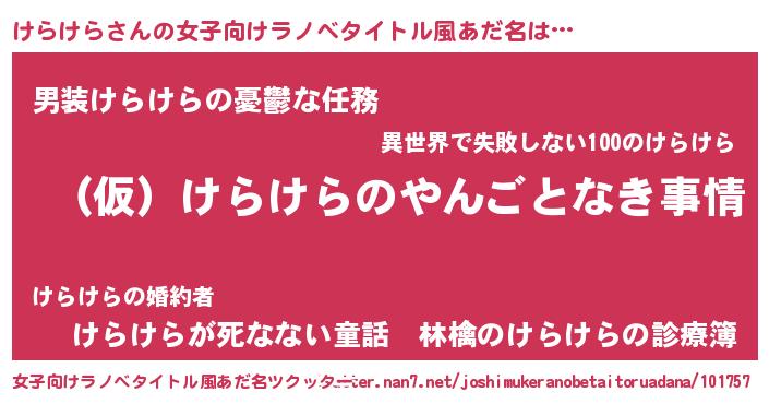 | 胡散臭い通販商品みたいなあだ名 | 『必ず成功するブレスレット…その名も「けらけら」』 |