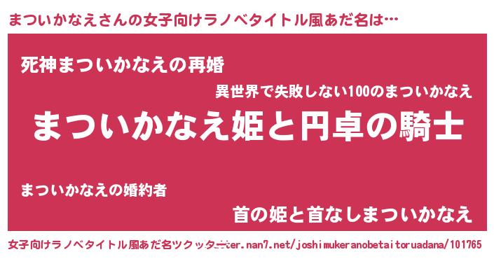 | 男性向けラノベタイトル風あだ名 | 『まついかなえの憂鬱』 |