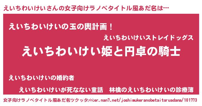 | 男性向けラノベタイトル風あだ名 | 『えいちわいけいの憂鬱』 |