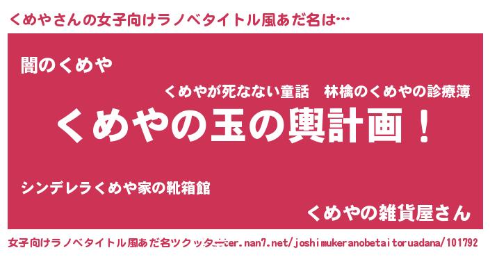 | 意味不明あだ名 | 『もやし科くめや属』『自称くめや』 |