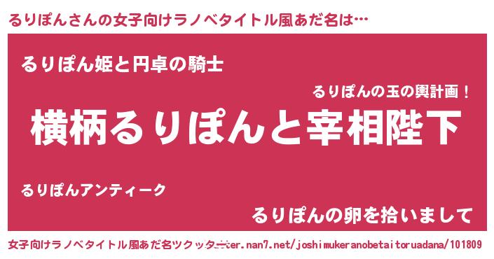 | 男性向けラノベタイトル風あだ名 | 『るりぽんに滅ぼされるだけの簡単なお仕事です』 |