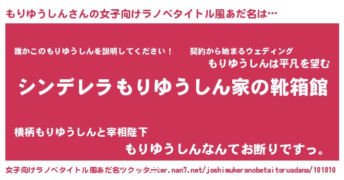 | 胡散臭い通販商品みたいなあだ名 | 『必ず成功するブレスレット…その名も「もりゆうしん」』 |
