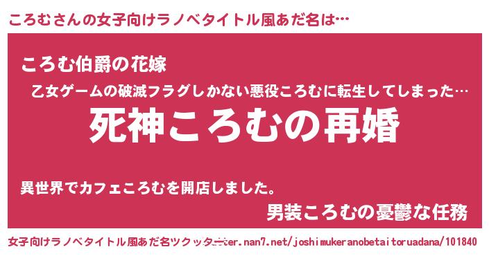 | 男性向けラノベタイトル風あだ名 | 『ノーゲーム・ノーコロム』 |