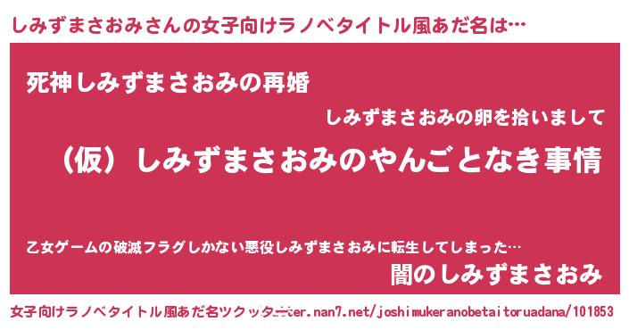 | 胡散臭い通販商品みたいなあだ名 | 『必ず成功する水晶球…その名も「しみずまさおみ」』 |