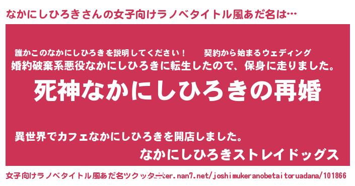| 男性向けラノベタイトル風あだ名 | 『ノーゲーム・ノーナカニシヒロキ』 |