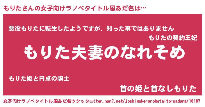 | 意味不明あだ名 | 『眠気覚ましガムもりた味』『自称もりた』 |