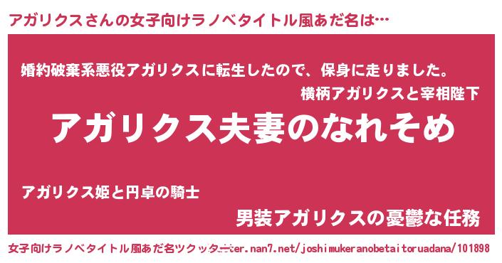 | ヒーロー風カッコイイあだ名 | 『正義の使者アガリクス』『仮面アガダー』 |