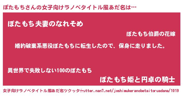 | 男性向けラノベタイトル風あだ名 | 『ボタモチスレイヤー』『ぼたもちの憂鬱』 |