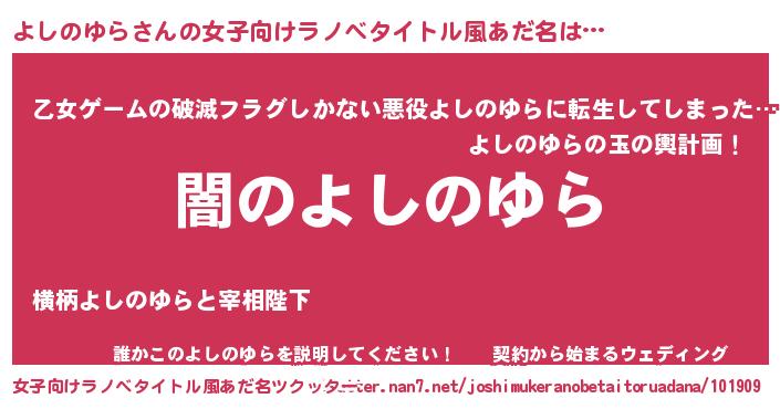 | 男性向けラノベタイトル風あだ名 | 『Re:よしのゆらから始める異世界生活』 |