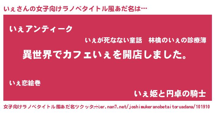 | 男性向けラノベタイトル風あだ名 | 『誰もが恐れるあのいぇが、ぼくの専属メイドになるようです。』 |