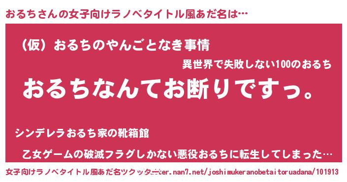 | 男性向けラノベタイトル風あだ名 | 『魔法科高校のおるち』『おるちの憂鬱』 |