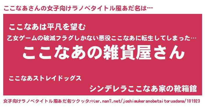 | 意味不明あだ名 | 『ここなあフォーエバー』『自称ここなあ』 |