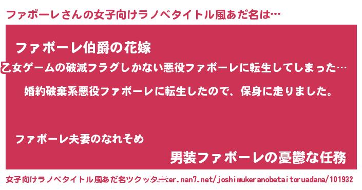 | 男性向けラノベタイトル風あだ名 | 『転生したらファボーレだった件』 |