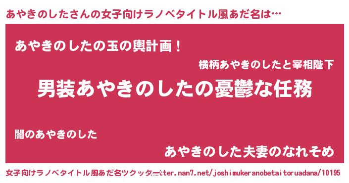| 肩書あだ名 | 『あやきのした船長』『あやきのした少佐』 |