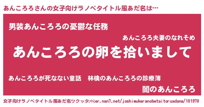 | 胡散臭い通販商品みたいなあだ名 | 『伝統あるサプリメント…その名も「あんころろ」』 |