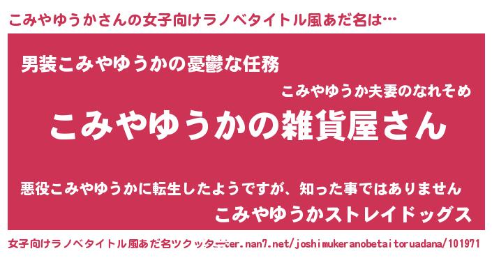 | 男性向けラノベタイトル風あだ名 | 『やはりこみやゆうかの青春ラブコメはまちがっている 』 |
