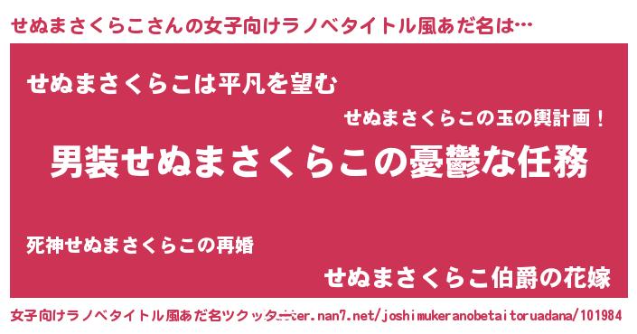 | 意味不明あだ名 | 『とにかく怪しいせぬまさくらこ』 |